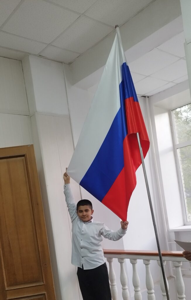 Традиционное утро понедельника началось с торжественной линейки, церемонии поднятия флага и исполнения гимна Российской Федерации.