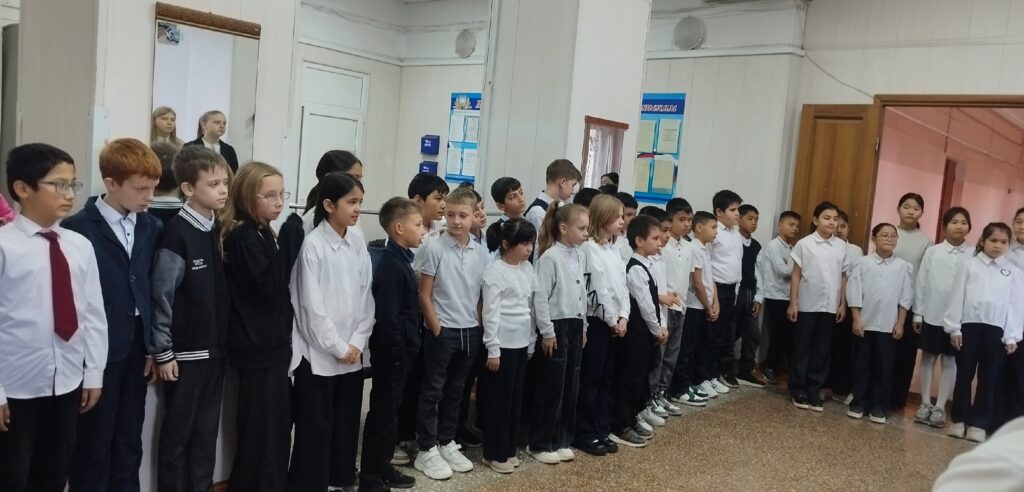 Традиционное утро понедельника началось с торжественной линейки, церемонии поднятия флага и исполнения гимна Российской Федерации. После подведения итогов прошедшей недели и новостях нынешней, ребята вернулись в классы на внеурочное занятие «Разговоры о важном»